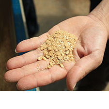 直営岡﨑牧場で肥育する近江日野牛は、子牛のうちは薄いエサでしっかりと腹を作り、ゆっくりと年月をかけオリジナル配合の濃厚飼料に移行していきます。そのため、通常の牛が二十四ケ月~で出荷されるのと比べると三十六ヶ月以上長期肥育(生体熟成)をし、肉質の旨味が最も高まる時期を判断しお客様へ提供しています。